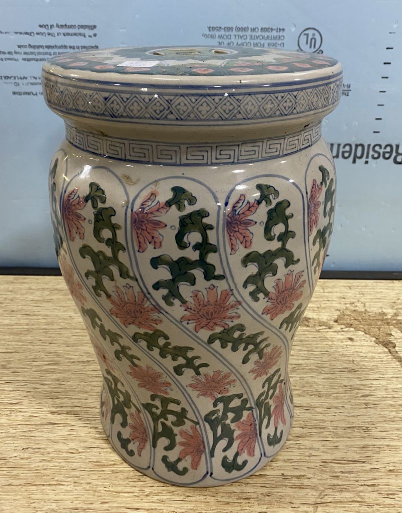 Modern Porcelain Garden Seat, good condition, 16"h., 10"dia. Modern Porcelain Garden Seat, good condition, 16"h., 10"dia.