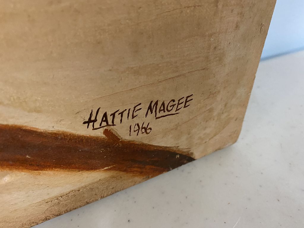 Hattie Magee 1966 Magnolia Painting, some painted in pealing off, unframed, 24"h., 20"w. Hattie Magee 1966 Magnolia Painting, some painted in pealing off, unframed, 24"h., 20"w.