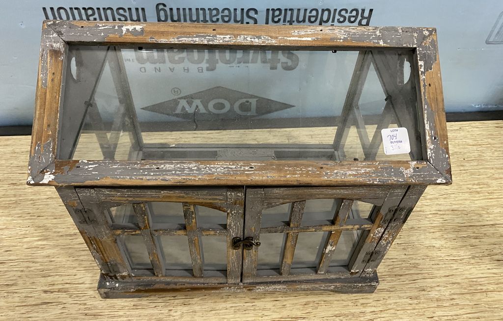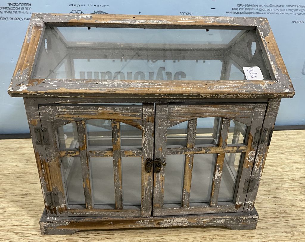 Decorative Glass Terrerium, painted distressed, two doors, 14"h., 15"w. Decorative Glass Terrerium, painted distressed, two doors, 14"h., 15"w.