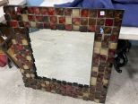 Contemporary Metal Decorated Mirror, metal tile design, 36"h., 36"w. Contemporary Metal Decorated Mirror, metal tile design, 36"h., 36"w.