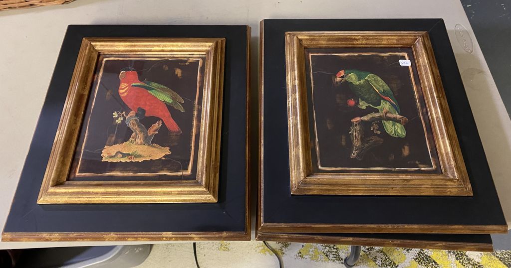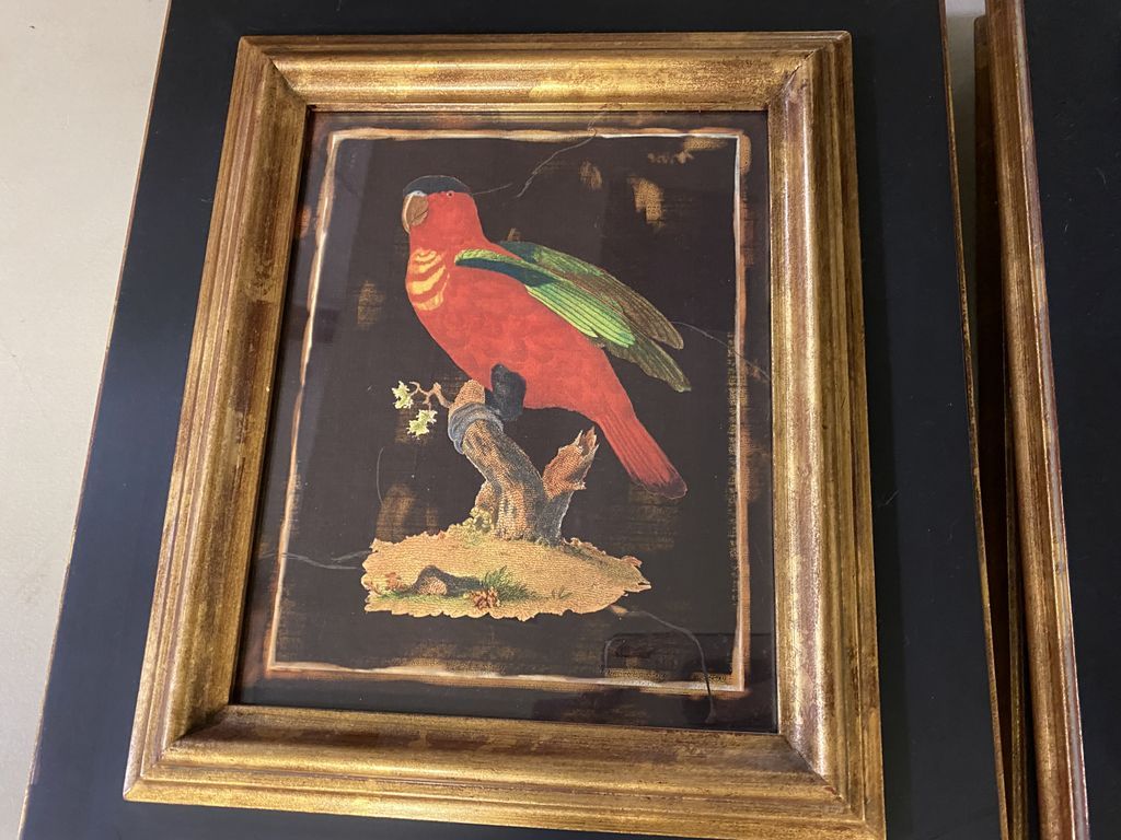 Four Black Framed Bird Prints, glassed, gold gilt trim, 15"h., 14"w. Four Black Framed Bird Prints, glassed, gold gilt trim, 15"h., 14"w.