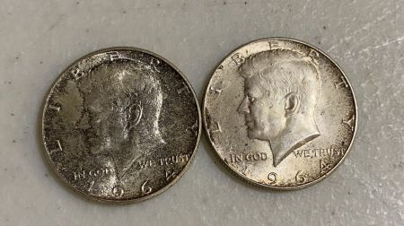 Two 1964 Kennedy Half Dollars, good. Two 1964 Kennedy Half Dollars, good.