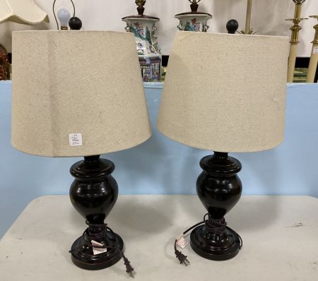 Pair of Modern Vase Table Lamps, with shades, good condition. 27"h. Pair of Modern Vase Table Lamps, with shades, good condition. 27"h.