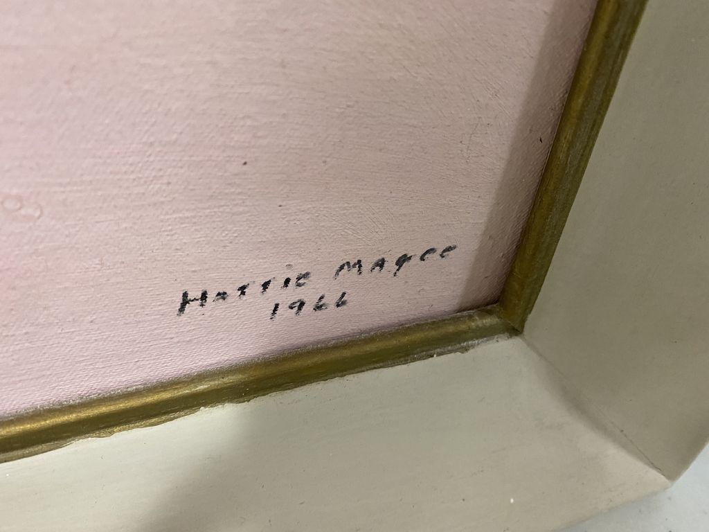Hattie Magee 1966 Painting of Flowers, on board, signed, framed, 24"h., 19"w Hattie Magee 1966 Painting of Flowers, on board, signed, framed, 24"h., 19"w