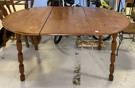 Vintage Country Farm Style Dining Table, has leaf, wear and scratches on finish, 28"h., 57"L. Vintage Country Farm Style Dining Table, has leaf, wear and scratches on finish, 28"h., 57"L.
