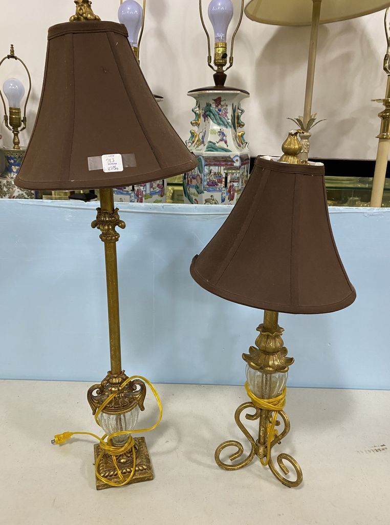 783 Two Gold Gilt Candle Stick Lamps