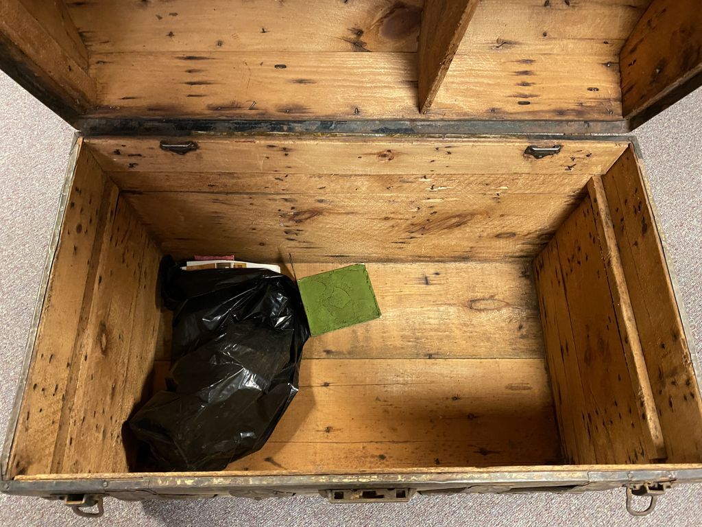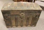 Antique Dome Top Trunk, lift top, wood and metal banded, aged condition, 24"h., 32"w. Antique Dome Top Trunk, lift top, wood and metal banded, aged condition, 24"h., 32"w.