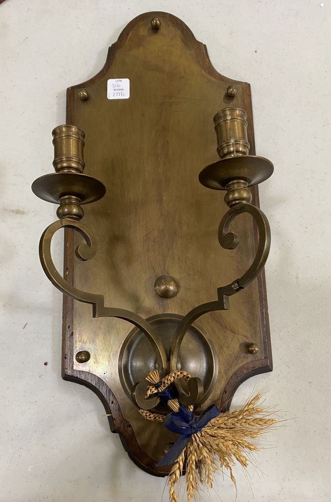 Wood Candle Sconce, metal two arm candle holders, 20"h. Wood Candle Sconce, metal two arm candle holders, 20"h.
