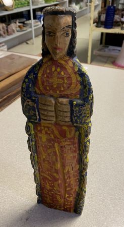 Wood Carved Religious Statue, hand painted, 15"h. Wood Carved Religious Statue, hand painted, 15"h.