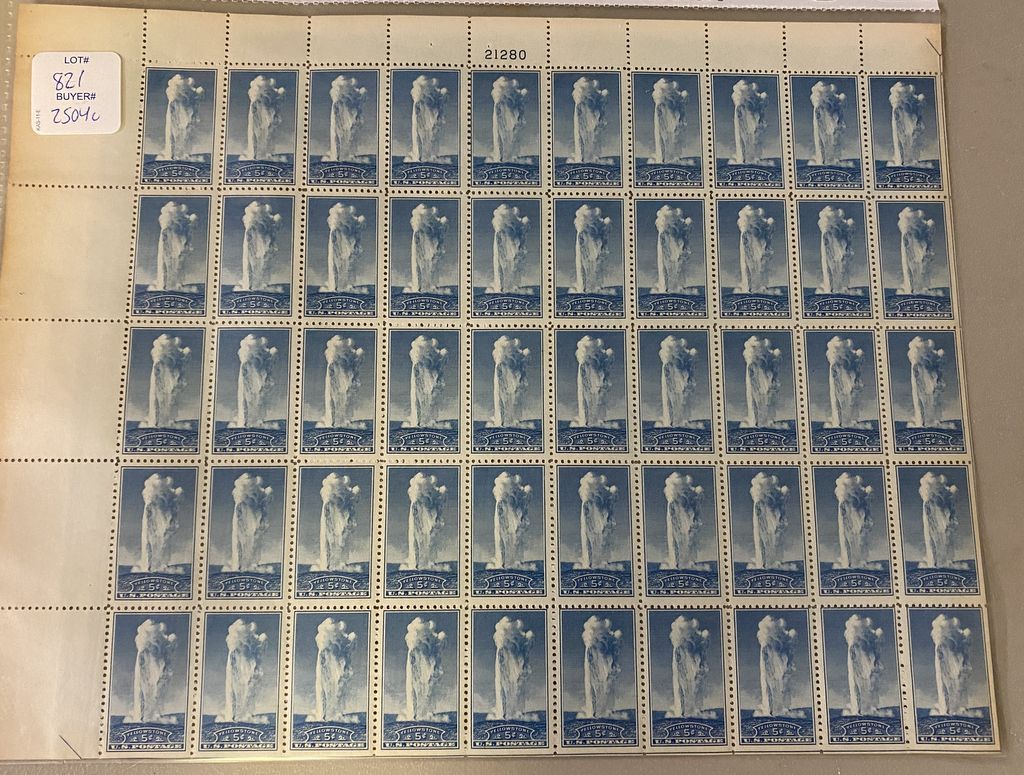 821 Sheet of Stamps Old Faithful Geyser at Yellowstone National Park