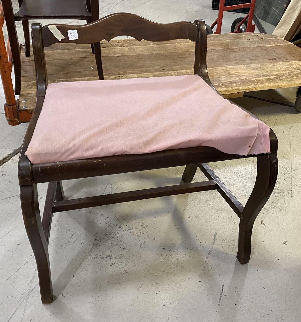 Mahogany Vanity Stool, needs new fabric on cushion. Mahogany Vanity Stool, needs new fabric on cushion.