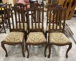 Six Antique Oak French Style Dining Chairs, floral cushions, aged condition. Six Antique Oak French Style Dining Chairs, floral cushions, aged condition.