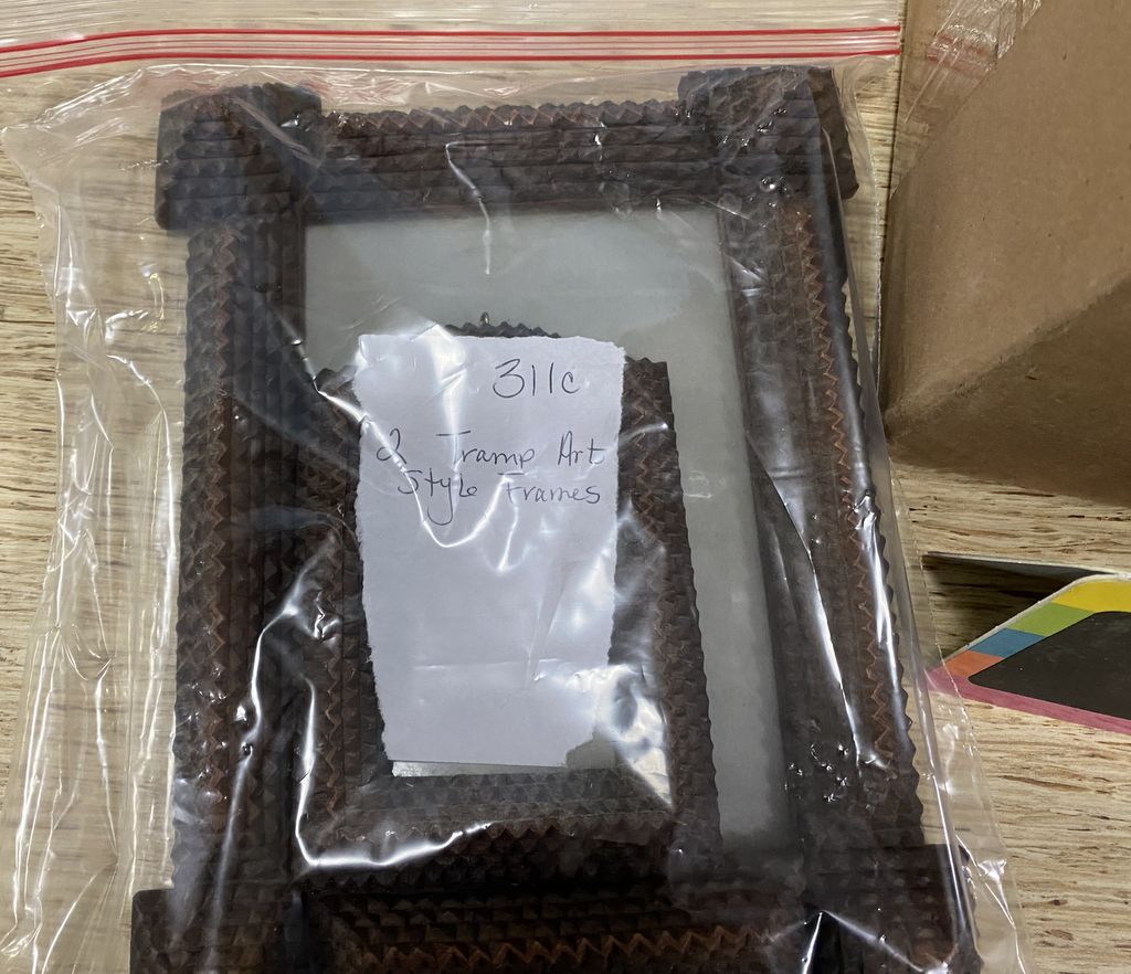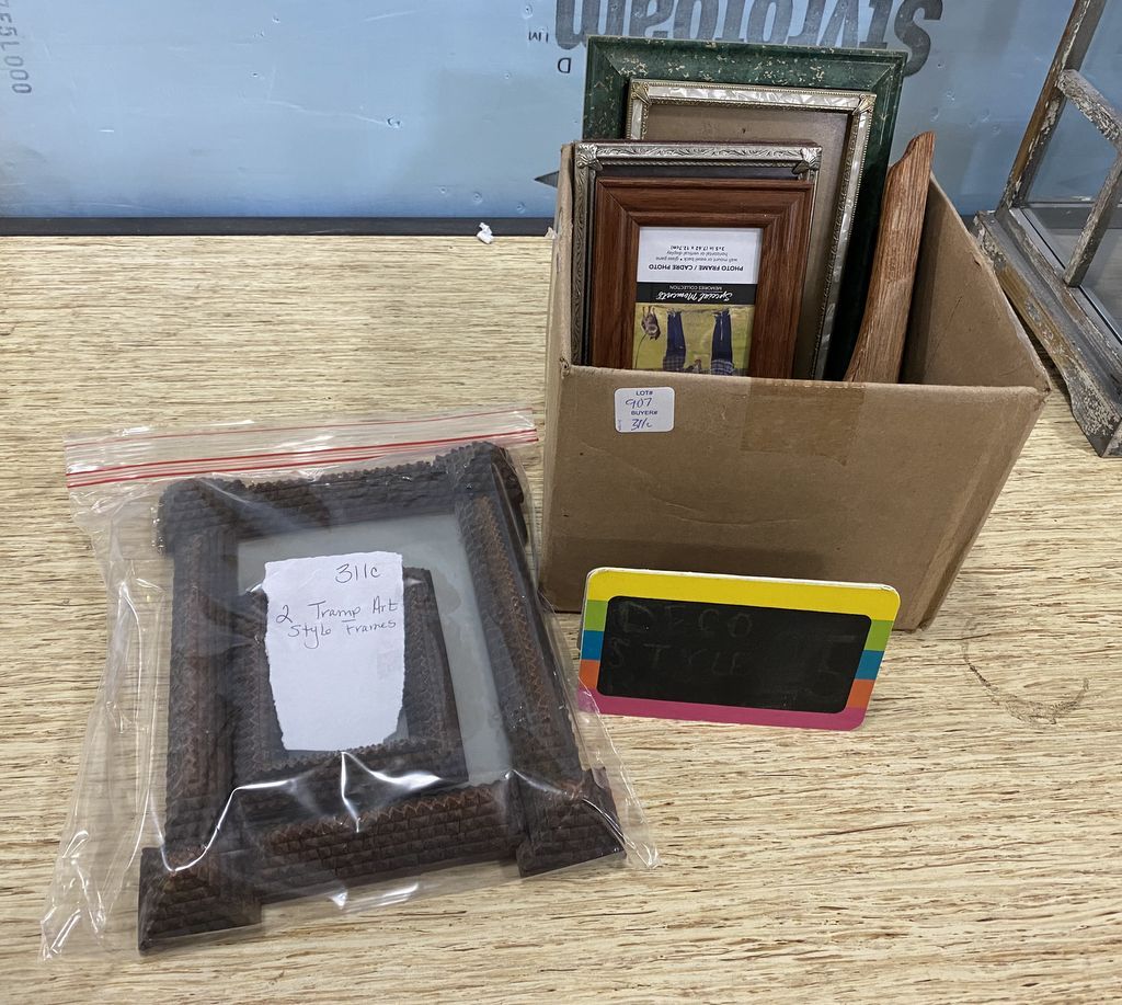 7 Picture Frames, two tramp art frames, assorted 5 picture frames. 7 Picture Frames, two tramp art frames, assorted 5 picture frames.