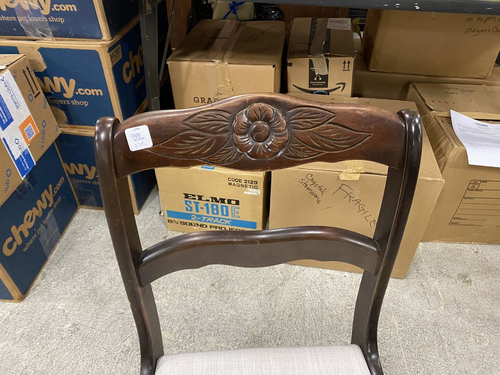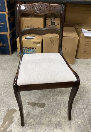 Mahogany Duncan Phyfe Accent Chair, carved rose, white cushion. Mahogany Duncan Phyfe Accent Chair, carved rose, white cushion.