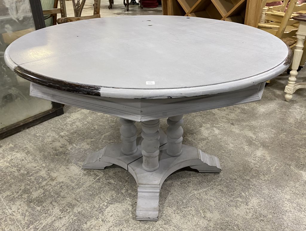 Painted Teal Pedestal Round Table, late 20th century, 29"h., 48"dia. Painted Teal Pedestal Round Table, late 20th century, 29"h., 48"dia.