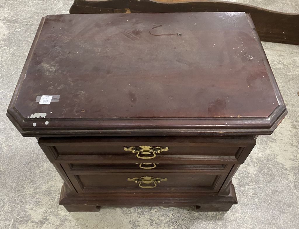 Worn Cherry Night Stand, three drawers, 26"h., 26"w. Worn Cherry Night Stand, three drawers, 26"h., 26"w.