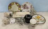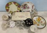 Collection of Porcelain Plates and cups, tray, candle stick, canister, cups, jar. Collection of Porcelain Plates and cups, tray, candle stick, canister, cups, jar.
