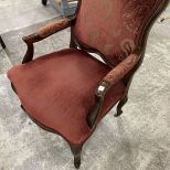 French Style Antique Reproduction Chair, red fabric chair. French Style Antique Reproduction Chair, red fabric chair.