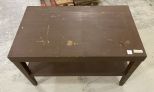 Vintage Small Thin Wood Coffee Table, two tier, has wear. 18"h., 29"w. Vintage Small Thin Wood Coffee Table, two tier, has wear. 18"h., 29"w.