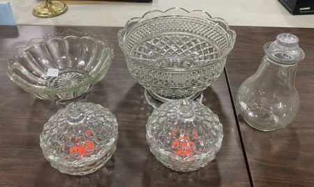 Group of Pressed Glass and Fostoria candy dishes. Group of Pressed Glass and Fostoria candy dishes.