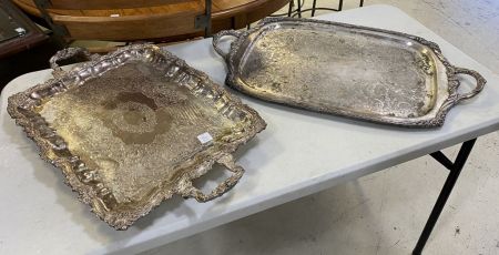 Two Silver Plate Serving Trays, Sheridan, Heritage Rogers Tray 28". Two Silver Plate Serving Trays, Sheridan, Heritage Rogers Tray 28".