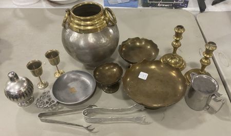 Group of Brass. Includes candle sticks, compote, vase, and other misc items Group of Brass. Includes candle sticks, compote, vase, and other misc items