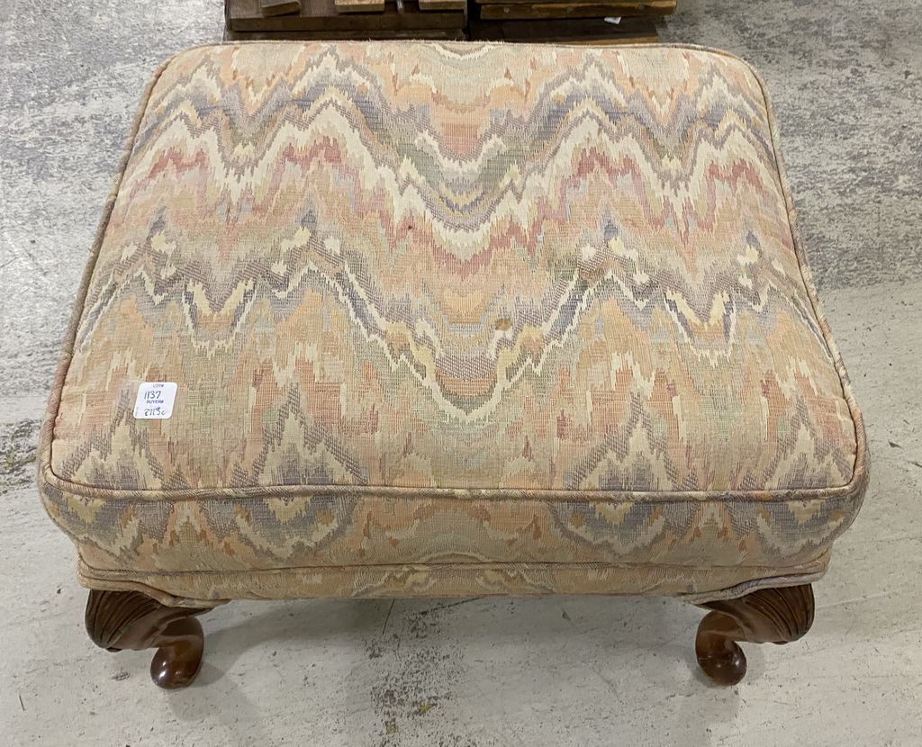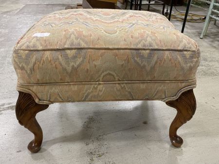 Upholstered Queen Anne Stool, light wear, 16"h. ,22"w. Upholstered Queen Anne Stool, light wear, 16"h. ,22"w.