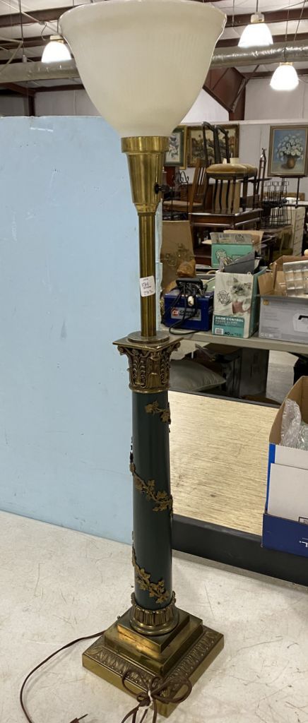 Torchiere Style Table Lamp, glass shade, brass base, 37"h. Torchiere Style Table Lamp, glass shade, brass base, 37"h.