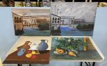 1201 Three Unframed Hattie Magee Artworks and a Print of Board
