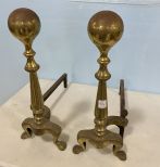 Brass Andirons, have tarnish wear, 19"h., 18"w Brass Andirons, have tarnish wear, 19"h., 18"w