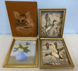 Four Hattie Magee Art Pieces, Cat, Still life, and ducks, 11"h., 9"w., Four Hattie Magee Art Pieces, Cat, Still life, and ducks, 11"h., 9"w.,