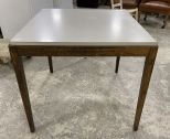 Formica Top Square Table, wood base, worn finish, 29"h., 32"w. Formica Top Square Table, wood base, worn finish, 29"h., 32"w.
