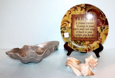 544 Three Seashells, Easel, Pewter Shaped Shell & Friends Plate