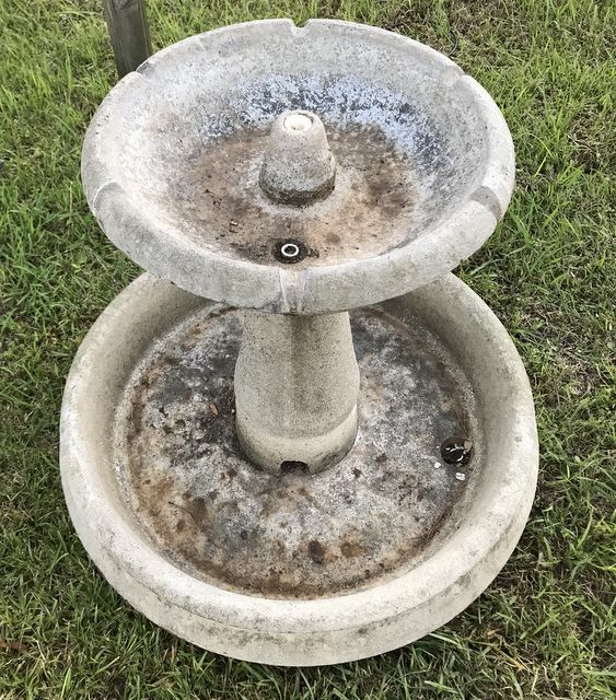 Large Concrete Water Fountain, two piece, outdoor wear, good condition. Large Concrete Water Fountain, two piece, outdoor wear, good condition.