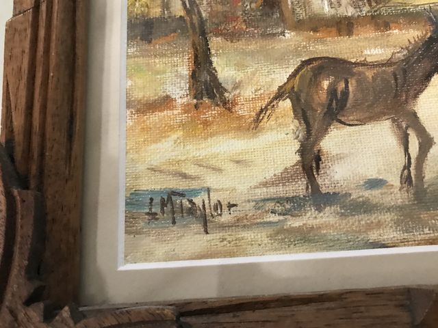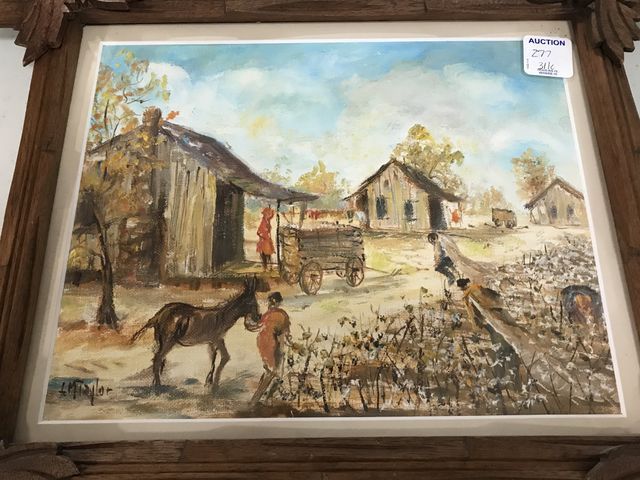 Lady Mary Taylor Folk Art Painting, signed lower left, on canvas, carved wood framed, glassed, 12"h., 10"w. Lady Mary Taylor Folk Art Painting, signed lower left, on canvas, carved wood framed, glassed, 12"h., 10"w.