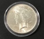 1922 Peace Liberty Silver Coin, fine condition. Like new. 1922 Peace Liberty Silver Coin, fine condition. Like new.