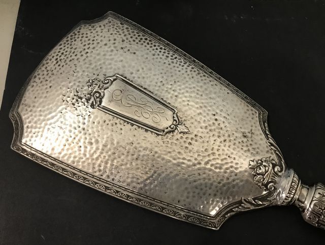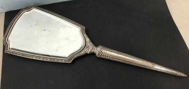 Sterling Silver Mirror by Saart Brothers, monogramed, 13 3/4". Sterling Silver Mirror by Saart Brothers, monogramed, 13 3/4".