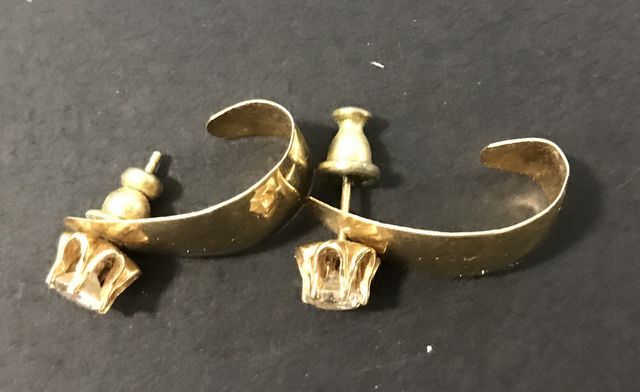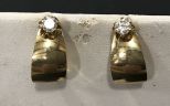 288 Marked 14K Gold Half Hoop Diamond Earrings
