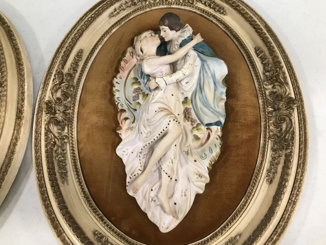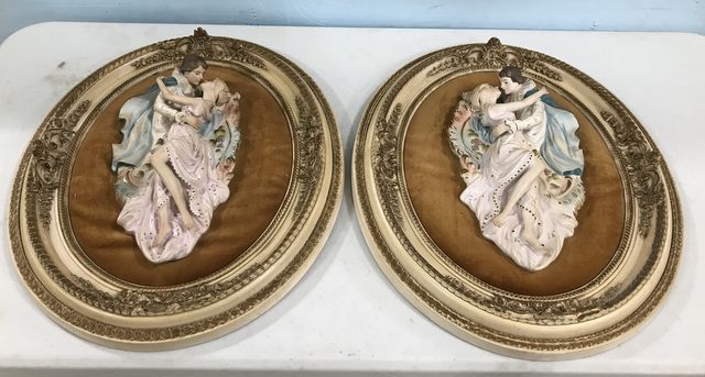 383 Pair of Porcelain Gent and Lady Oval Wall Plaques