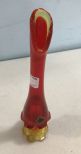 Red Fenton Art Glass Vase, footed, with makers tag, 12"h. Red Fenton Art Glass Vase, footed, with makers tag, 12"h.
