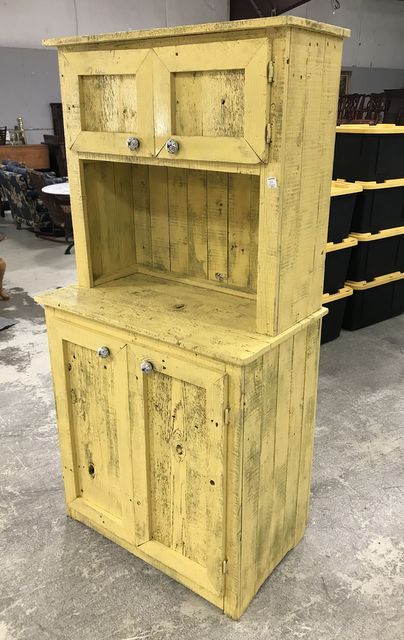 424 Primitive Style Painted Yellow Hutch