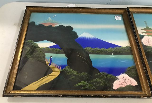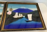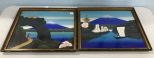 Two Chinese Paintings on Silk, sea shore scenes, glassed, framed, 16"h., 18"w. Two Chinese Paintings on Silk, sea shore scenes, glassed, framed, 16"h., 18"w.