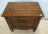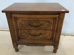 Dixie Furniture Company French Provincial night stand, two drawers, walnut, has light finish wear, 24"h., 26"w. Dixie Furniture Company French Provincial night stand, two drawers, walnut, has light finish wear, 24"h., 26"w.