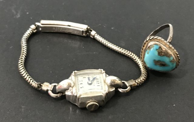 Vintage 1940's Ladies Bulova Watch and Unmarked Turquoise Ring, 6 size. Vintage 1940's Ladies Bulova Watch and Unmarked Turquoise Ring, 6 size.