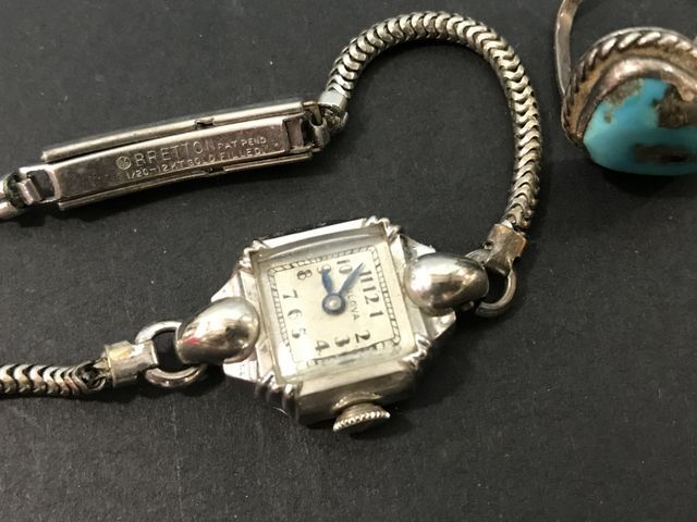 463 Vintage 1940's Ladies Bulova Watch and Unmarked Turquoise Ring