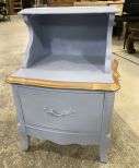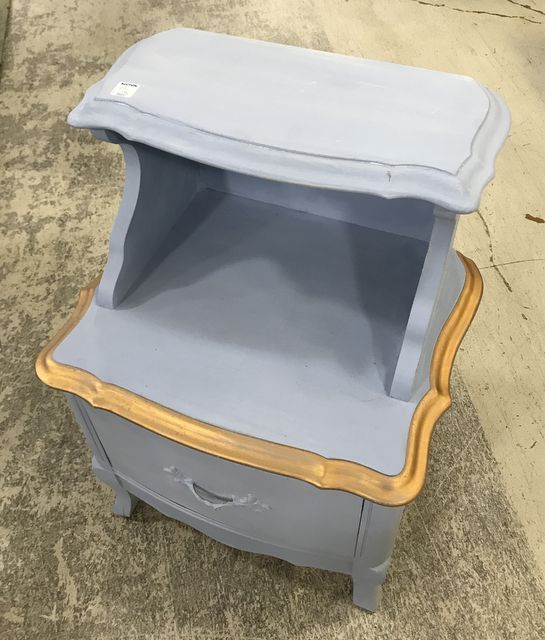 Blue and Gold Painted French Style Night Stand, single drawer, good condition, 27"h., 19"w. Blue and Gold Painted French Style Night Stand, single drawer, good condition, 27"h., 19"w.