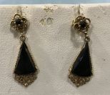 492 Pair of Marked 14K Gold Onyx Dangle Earrings