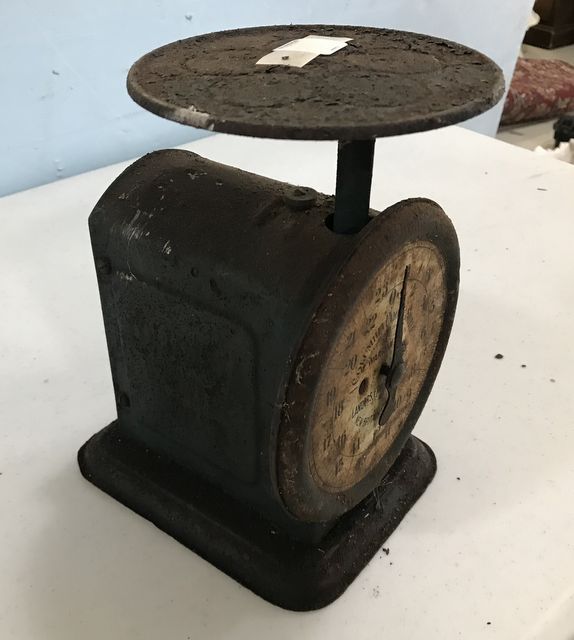 Columbia Family Scale Landers, Frary, and Clark Scale, working condition, rustic condition. Columbia Family Scale Landers, Frary, and Clark Scale, working condition, rustic condition.