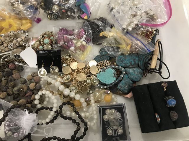Group of Costume Jewelry pieces, necklaces, earrings, bracelets, assorted styles, and vintage rings. Group of Costume Jewelry pieces, necklaces, earrings, bracelets, assorted styles, and vintage rings.