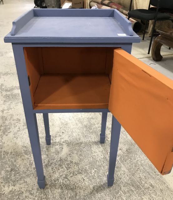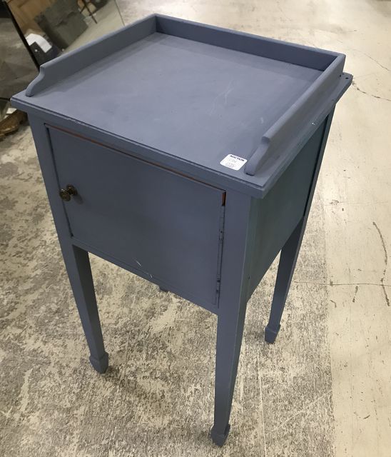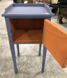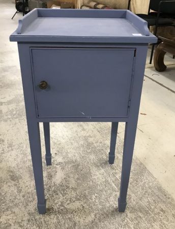 Painted Blue Sheraton Style Commode, single door, light wear, 31"h., 16"w. Painted Blue Sheraton Style Commode, single door, light wear, 31"h., 16"w.